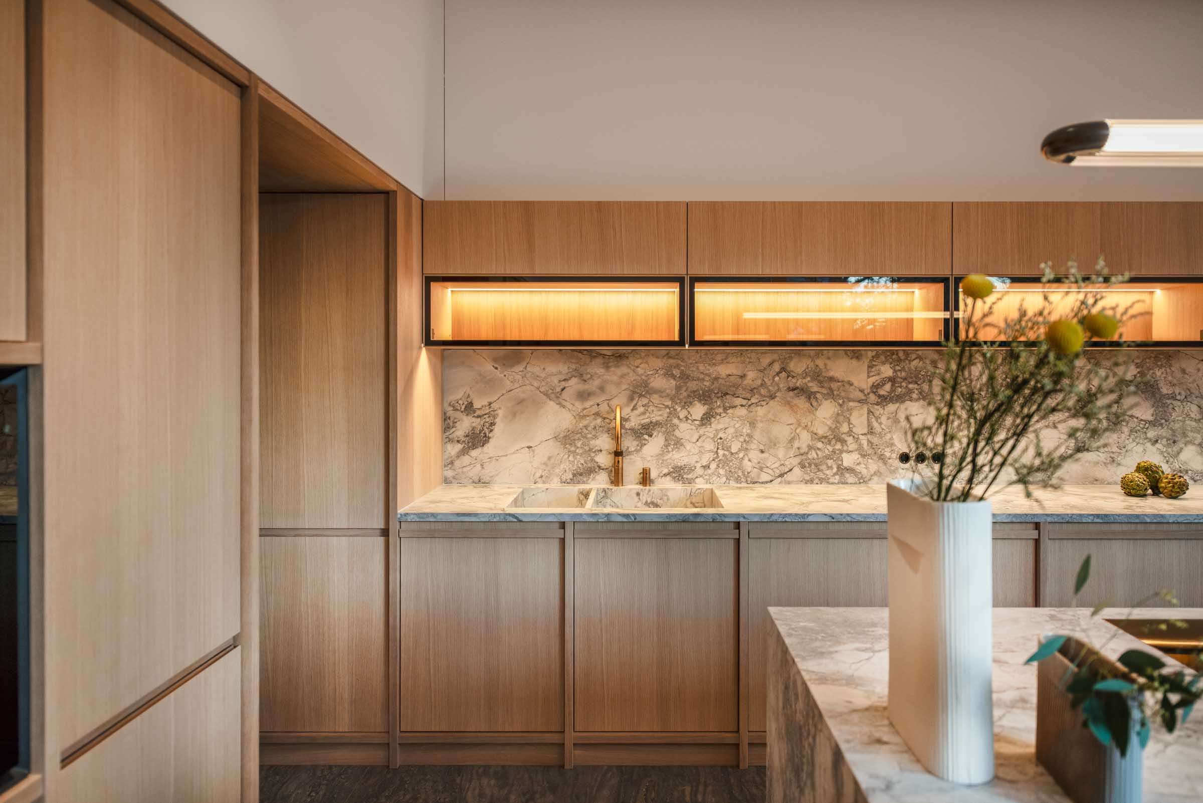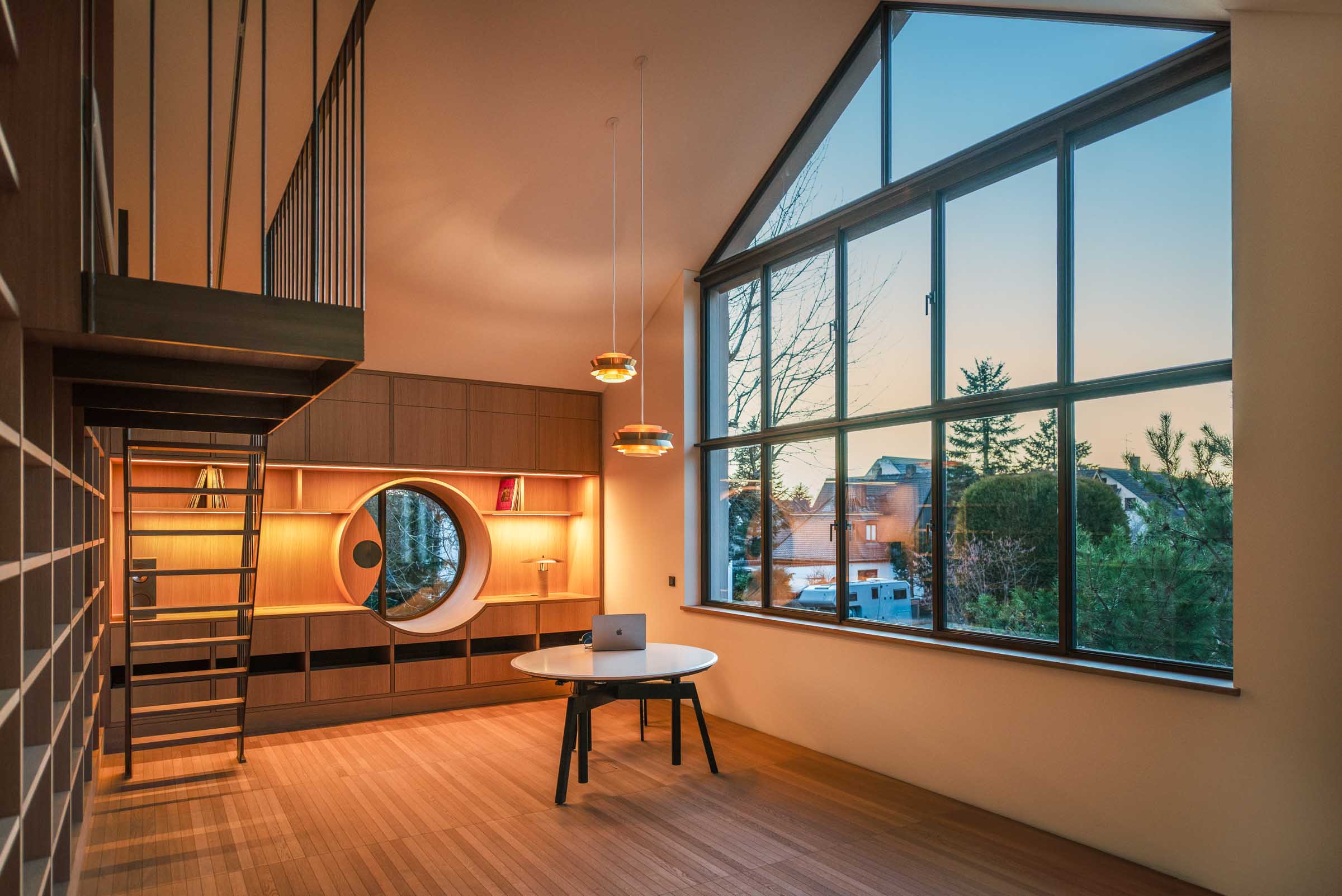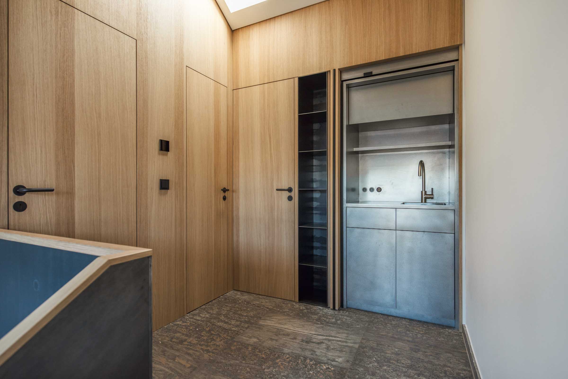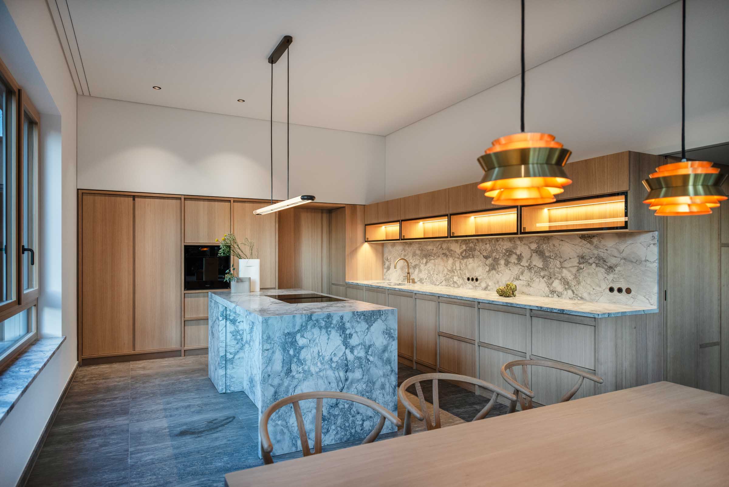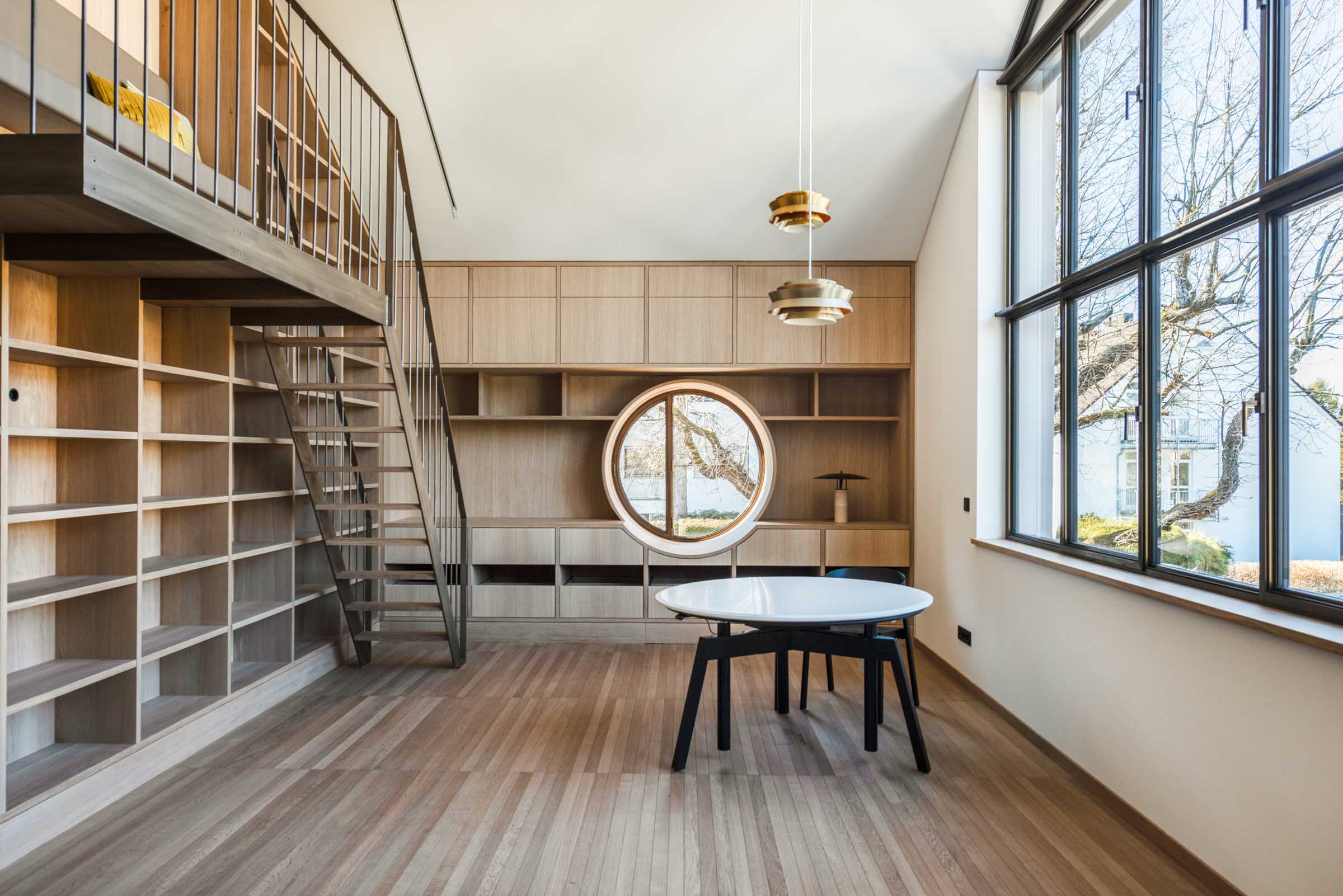 Der Entwurf von Knopp Wassmer Architekten schafft die räumliche Grundlage – ARRT Studio verantwortete in enger Abstimmung mit den Bauherr:innen und Architekten die Innenraumgestaltung und den maßgefertigten Ausbau.