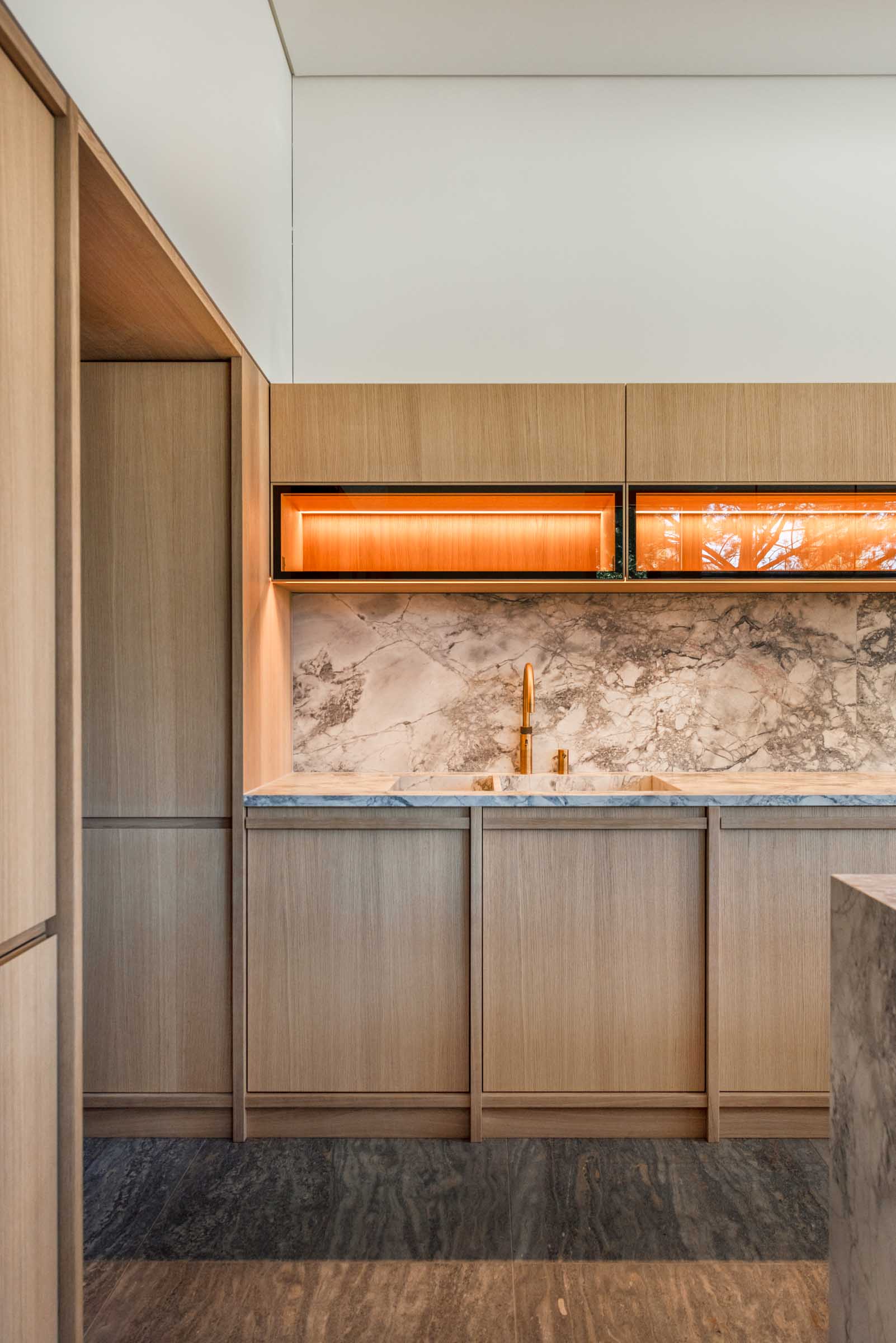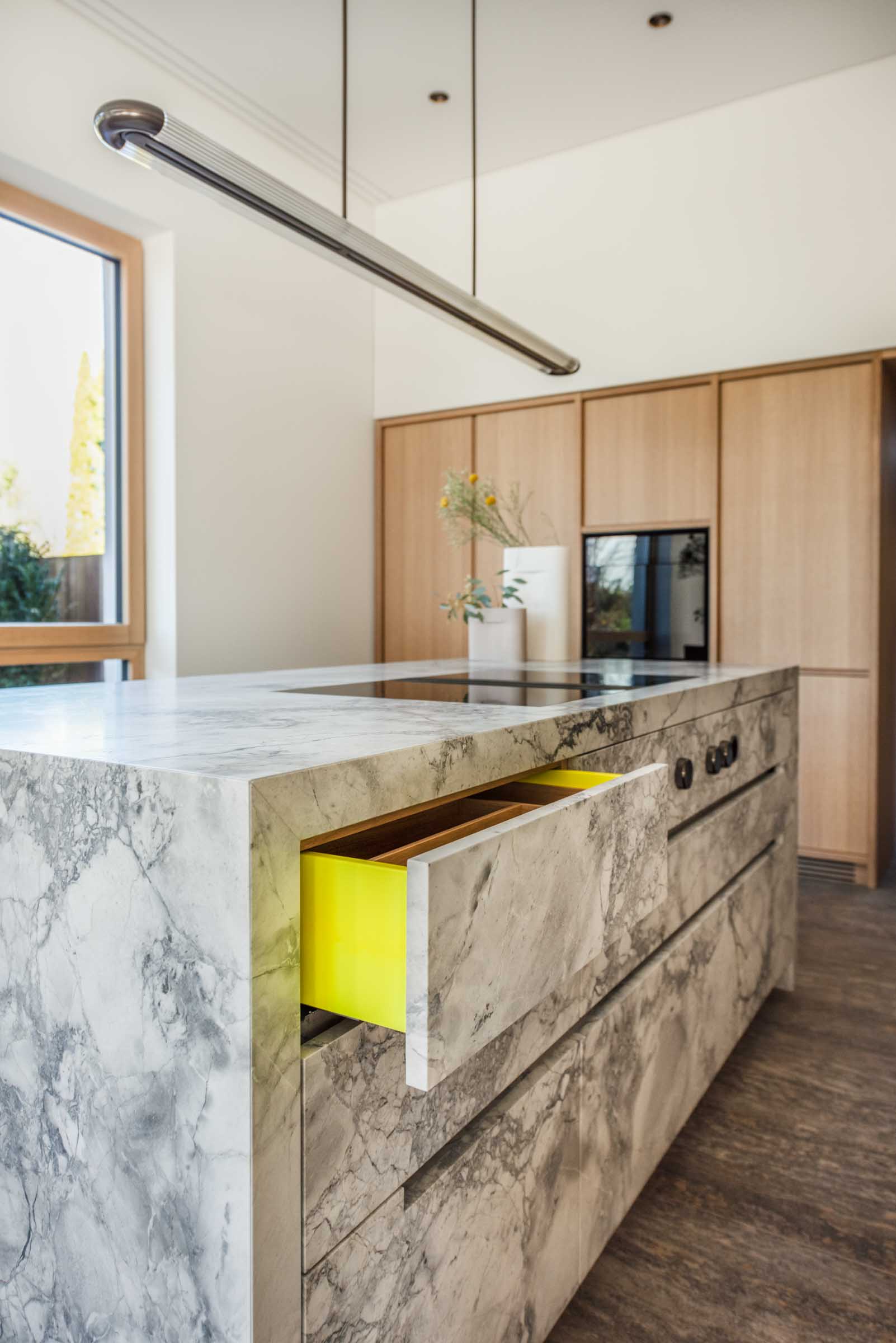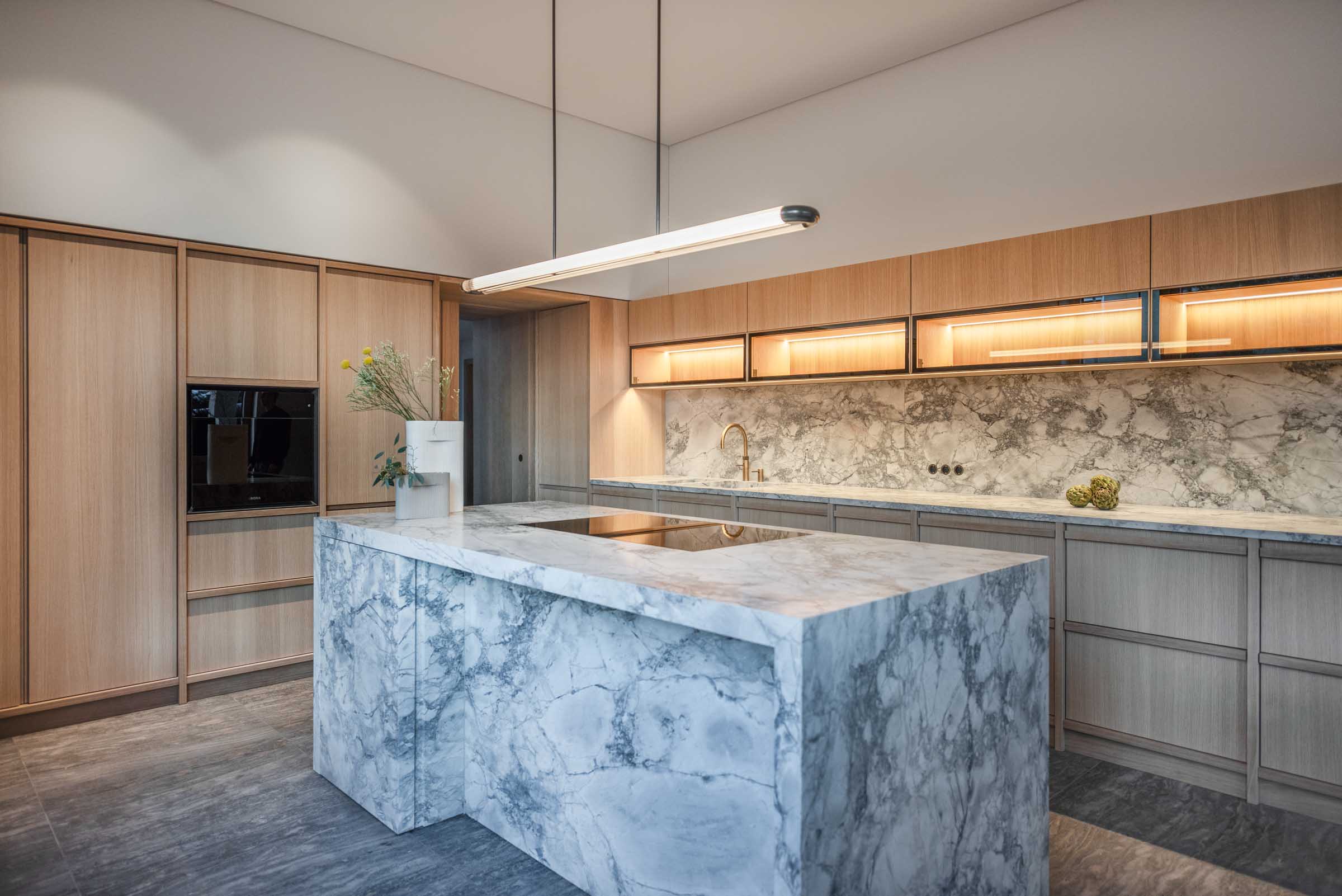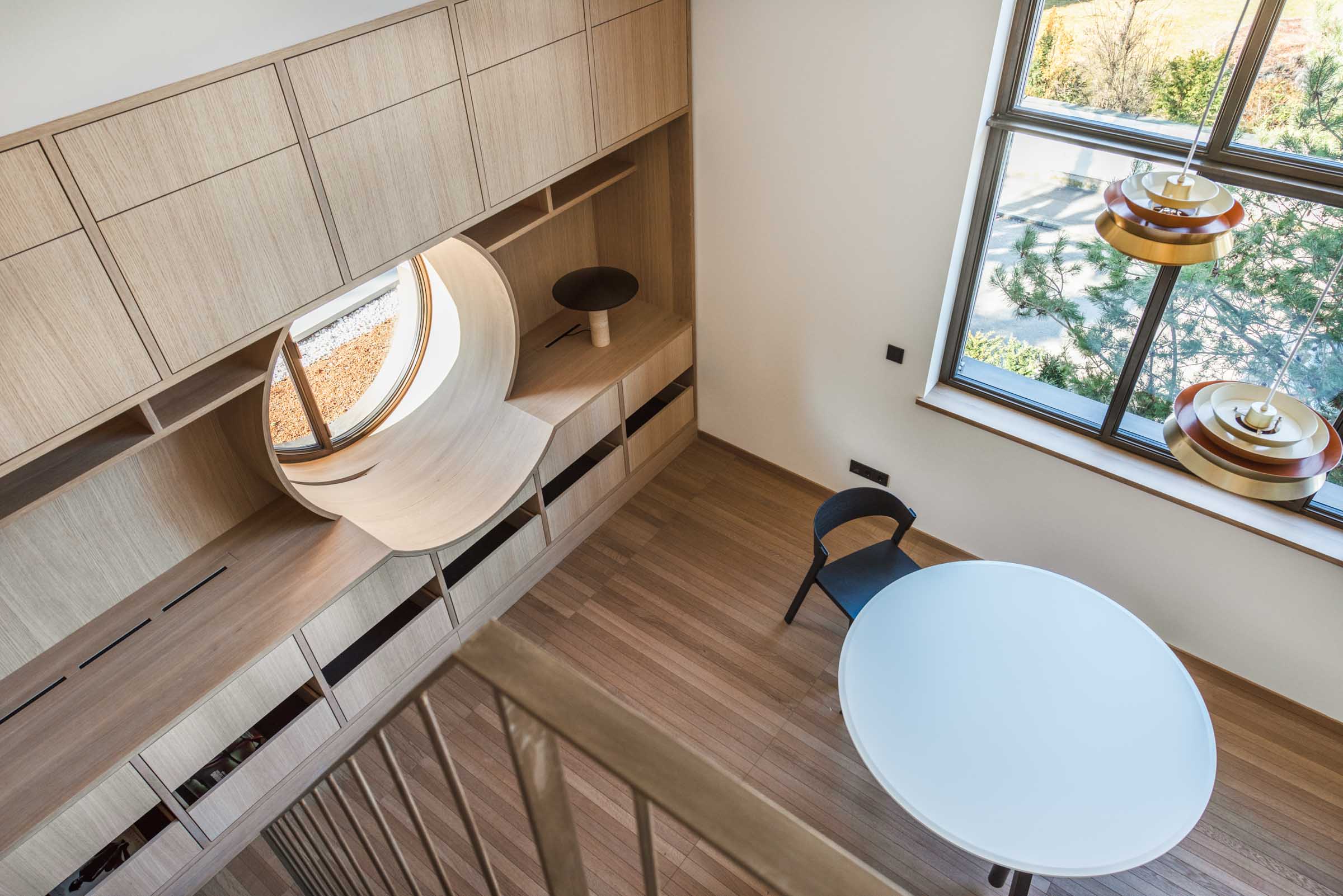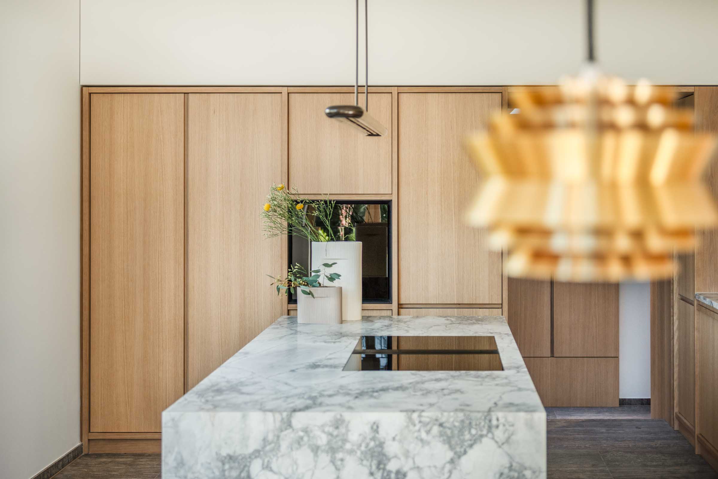 Der Entwurf von Knopp Wassmer Architekten schafft die räumliche Grundlage – ARRT Studio verantwortete in enger Abstimmung mit den Bauherr:innen und Architekten die Innenraumgestaltung und den maßgefertigten Ausbau.