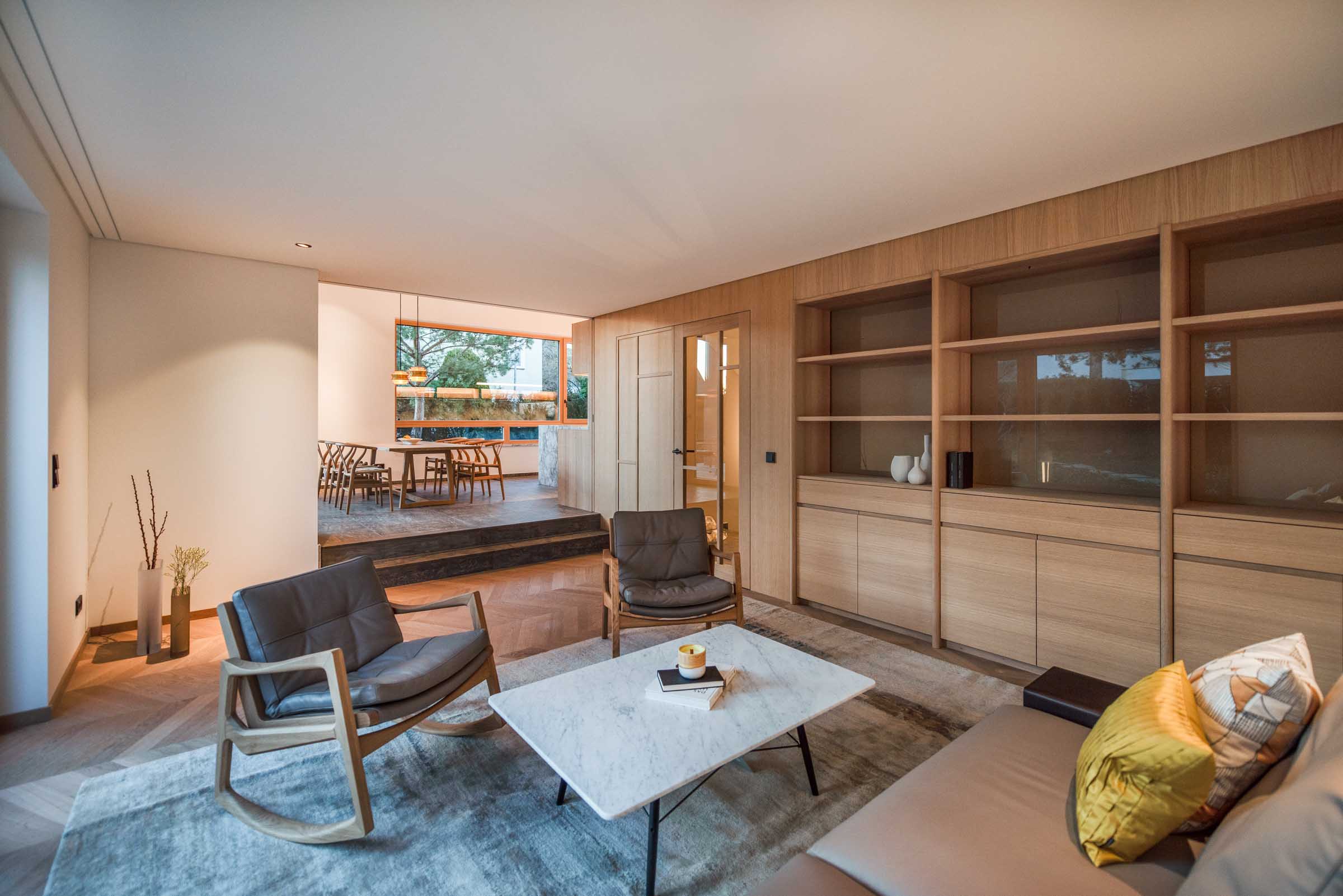 Forstenried ist ein Beispiel für das Zusammenspiel starker architektonischer Setzungen und einer Innenarchitektur, die diese präzise aufnimmt – mit großer Sorgfalt für Proportion, Funktion und Lebensgefühl.